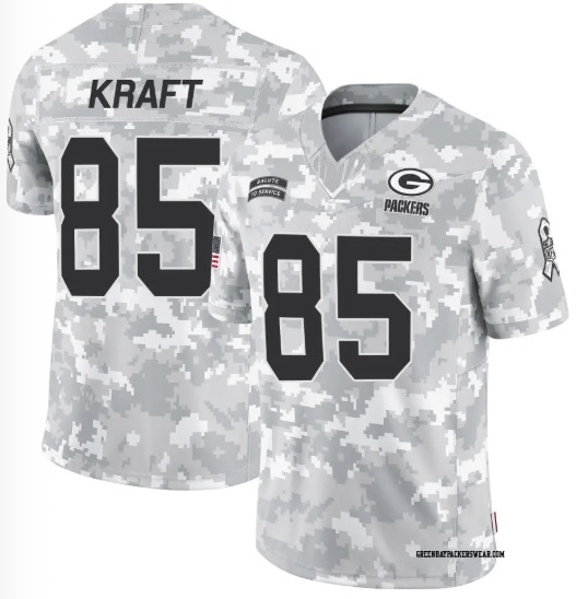 Limited Arctic Camo Men's #85 Tucker Kraft Green Bay Packers 2025 Salute to Service Jersey