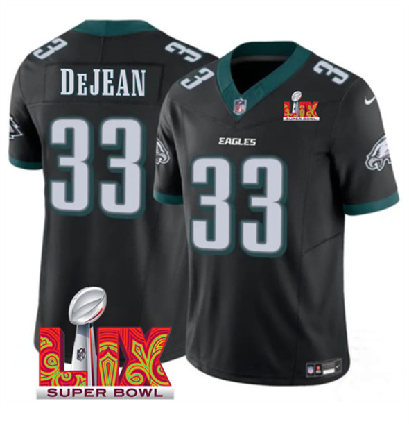 Men's White Philadelphia Eagles #33 Cooper DeJean 2025 Super Bowl LIX Patch F.U.S.E. Vapor Limited Stitched Football Jersey