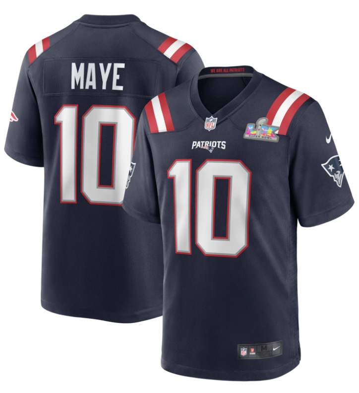 Men's New England Patriots #10 Drake Maye Nike Navy Super Bowl LX Patch Game Jersey