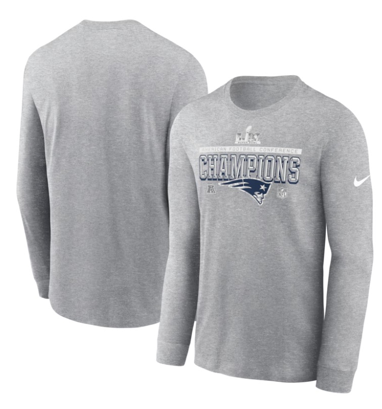Men's New England Patriots Nike Heather Gray 2025 AFC Champions Locker Room Trophy Collection Long Sleeve T-Shirt
