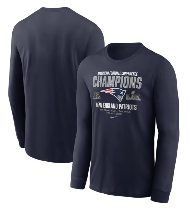 Men's New England Patriots Nike Navy 2025 AFC Champions Team Nation Long Sleeve T-Shirt