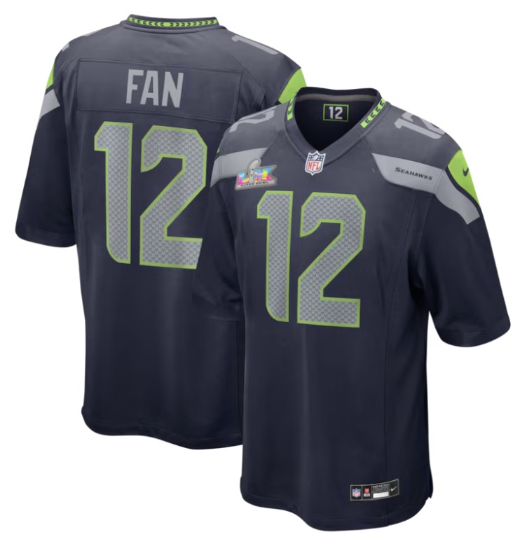 Men's Seattle Seahawks #12 12s Nike College Navy Super Bowl LX Patch Game Jersey