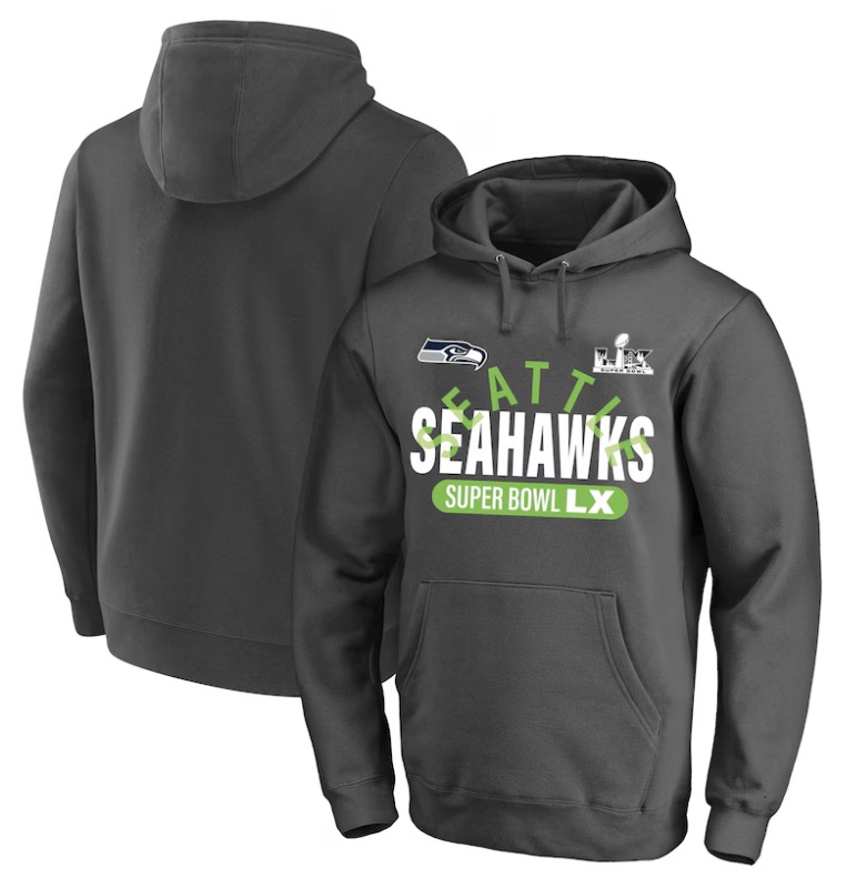 Men's Seattle Seahawks Fanatics Charcoal Super Bowl LX Big & Tall Game Plan Hoodie