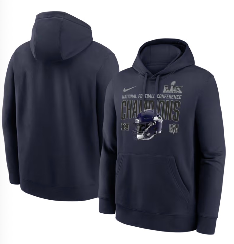 Men's Seattle Seahawks Nike College Navy 2025 NFC Champions Glory Shield Hoodie