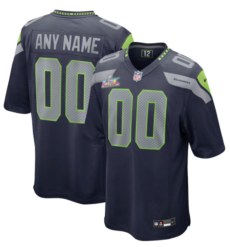 Men's Seattle Seahawks Nike College Navy Super Bowl LX Patch Custom Game Jersey