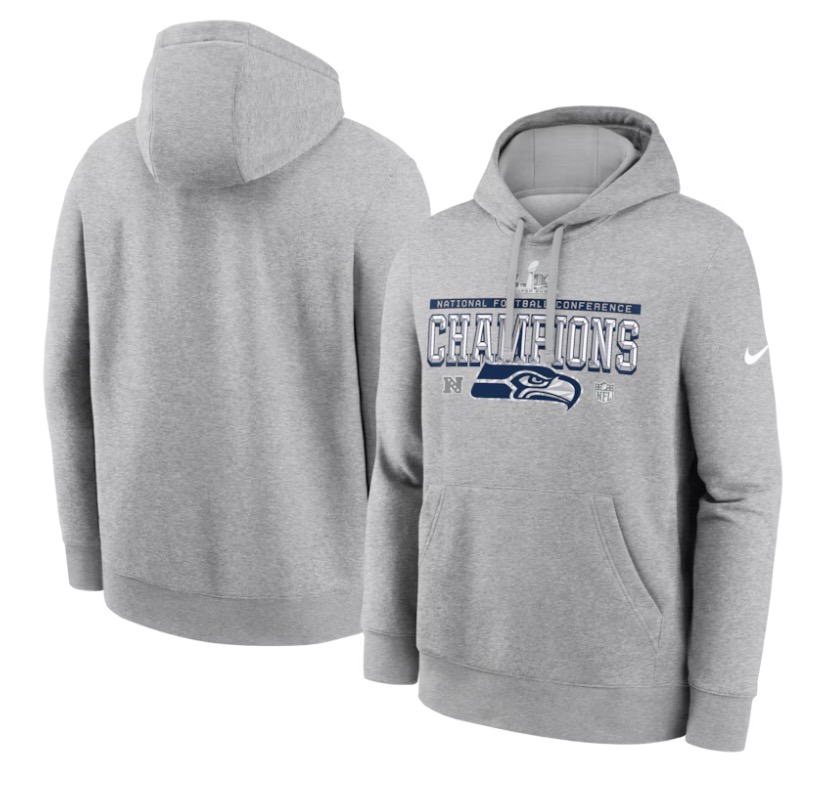 Men's Seattle Seahawks Nike Heather Gray 2025 NFC Champions Locker Room Trophy Collection Hoodie