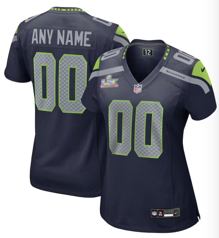 Women's Seattle Seahawks Nike College Navy Super Bowl LX Patch Custom Game Jersey