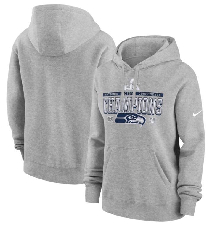 Women's Seattle Seahawks Nike Heather Gray 2025 NFC Champions Locker Room Trophy Collection Club Fleece Hoodie
