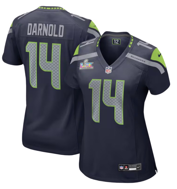 Women's Seattle Seahawks Sam Darnold Nike College Navy Super Bowl LX Patch Game Jersey