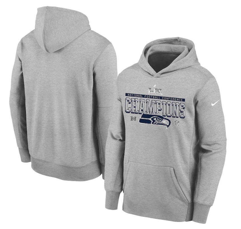 Youth Seattle Seahawks Nike Gray 2025 NFC Champions Locker Room Trophy Collection Authentic Hoodie