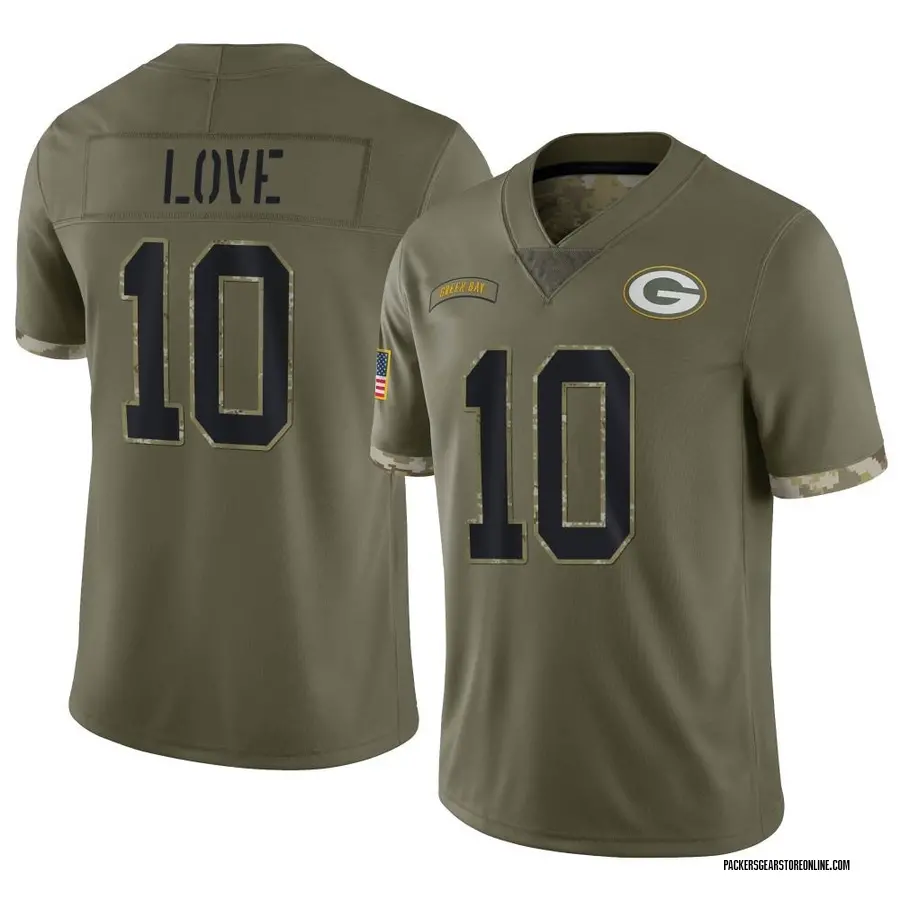 Jordan Love #10 Green Bay Packers Men's Limited 2022 Salute To Service Jersey - Olive
