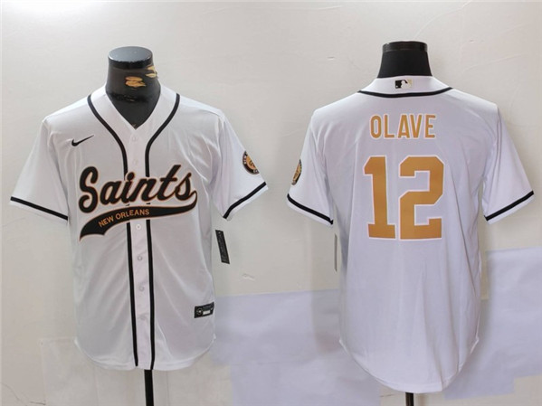 Men's New Orleans Saints #12 Chris Olave White Cool Base Stitched Baseball Jersey