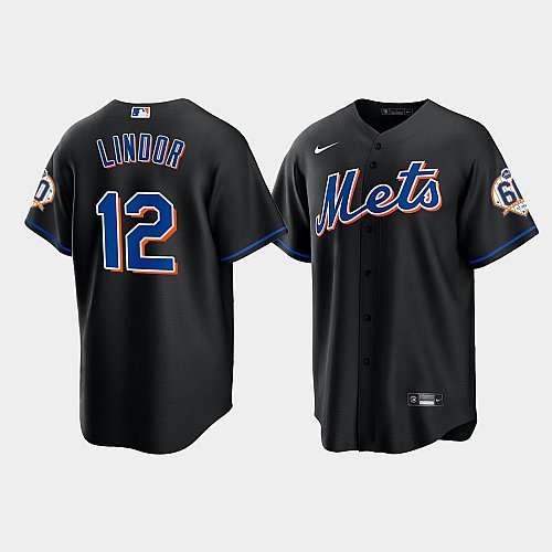 Men's New York Mets #12 Francisco Lindor 60th Anniversary Replica Black Jersey