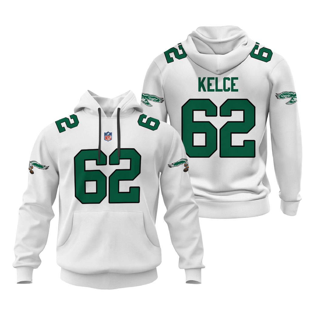 Men's Philadelphia Eagles #62 Jason Kelce White and Kelly Green Hoodie