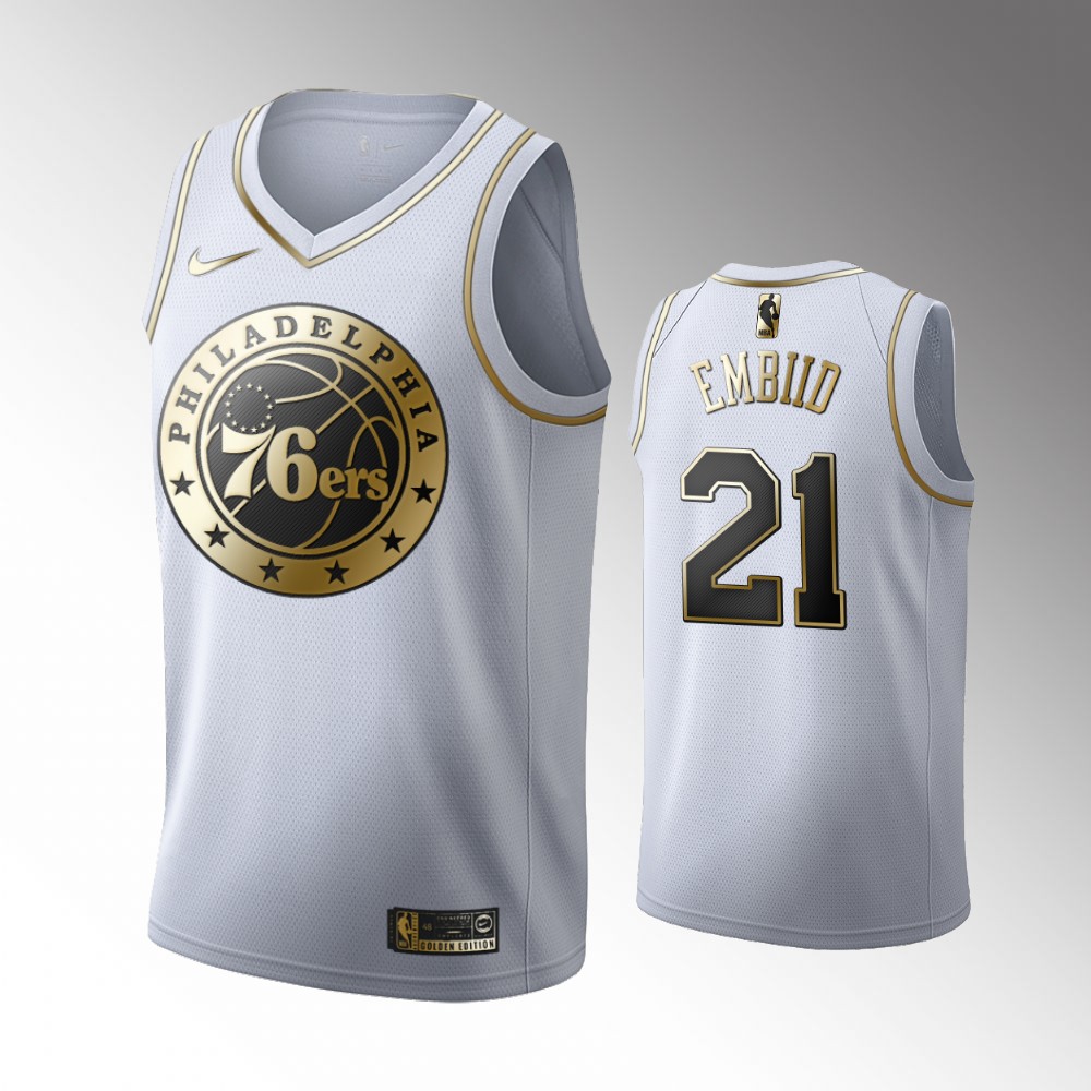 Philadelphia 76ers #21 Joel Embiid White 2019-20 Golden Edition Jersey