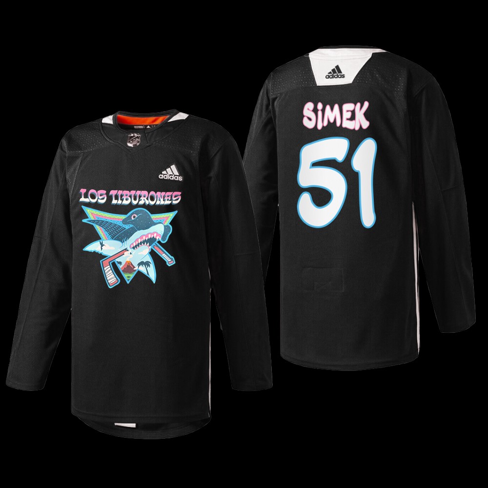 San Jose Sharks 2022 Los Tiburones Jersey Radim Simek Black #51 Specialty Warm-Up Uniform