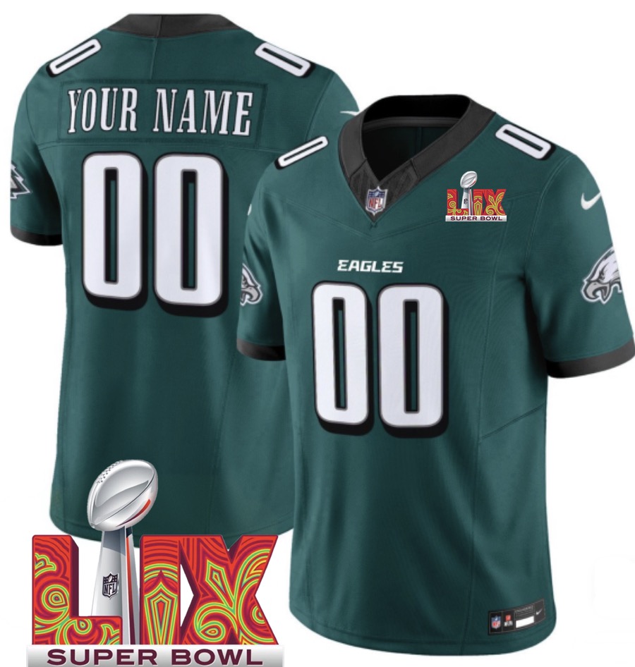 Youth Green Philadelphia Eagles Active Player Custom 2025 Super Bowl LIX Patch F.U.S.E. Vapor Limited Stitched Football Jersey